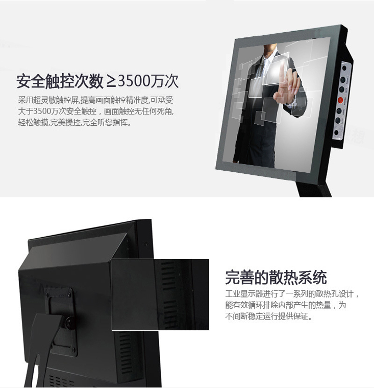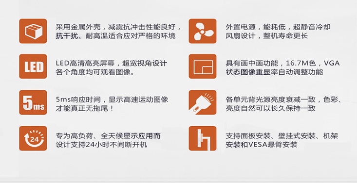 創(chuàng)視紀工業(yè)顯示器就是應用在工業(yè)控制過程或設備的顯示器。它與民用或商用的顯示器的主要區(qū)別是外殼設計一般采用全鋼設計,面板分為普通鐵板、不銹鐵、不銹鋼、鋁面板等不同材質,防塵、防震的特殊設計,采用工業(yè)級的液晶顯示屏,在對環(huán)境要求較高的情況下,考慮采用寬溫(-40至85度)的液晶顯示屏,創(chuàng)視紀工業(yè)顯示器的防塵等級最高為6,防水最高為8 。