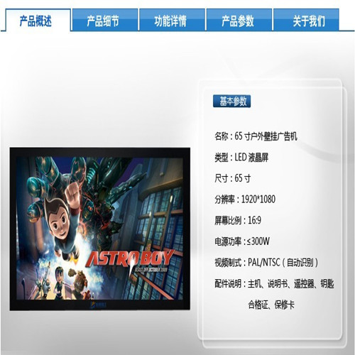 產(chǎn)品具備各種惡劣環(huán)境中使用的各項(xiàng)優(yōu)異特性及良好的可靠性,可廣泛適用于戶外廣場、電子站臺(tái)、大型超市連鎖店、體育場館、機(jī)場等戶內(nèi)外環(huán)境的媒體圖像播放等。
