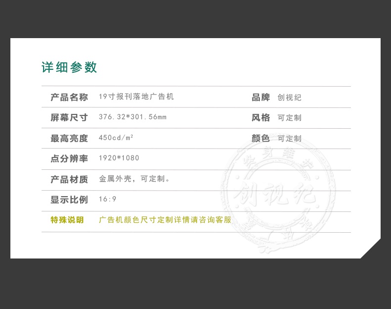 產(chǎn)品名稱:19寸網(wǎng)絡報刊廣告機           品牌: 創(chuàng)視紀
