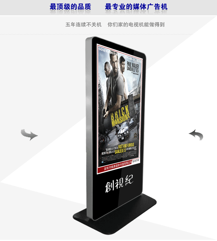 55寸立式單機版廣告機,蘋果款,3880元/臺,含4G內(nèi)存,可任意分屏,U盤上傳速度100兆沒秒