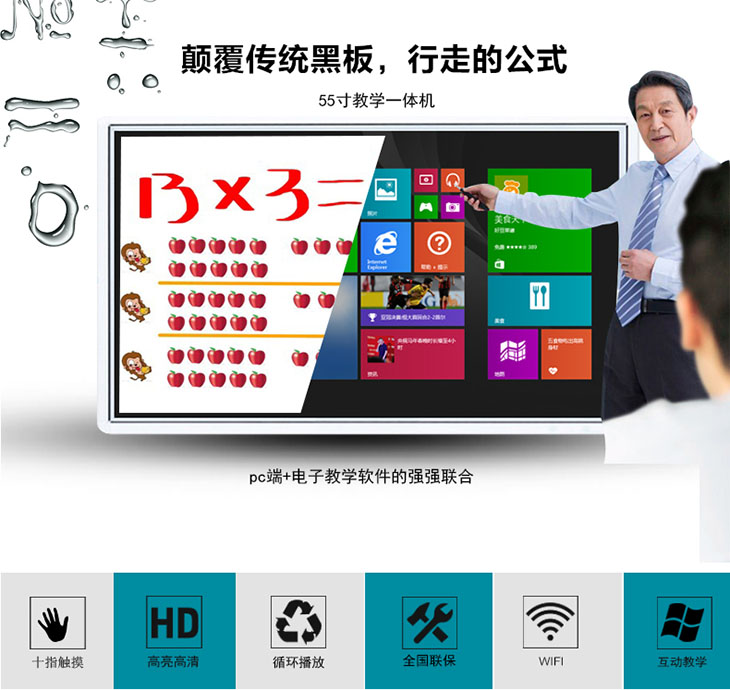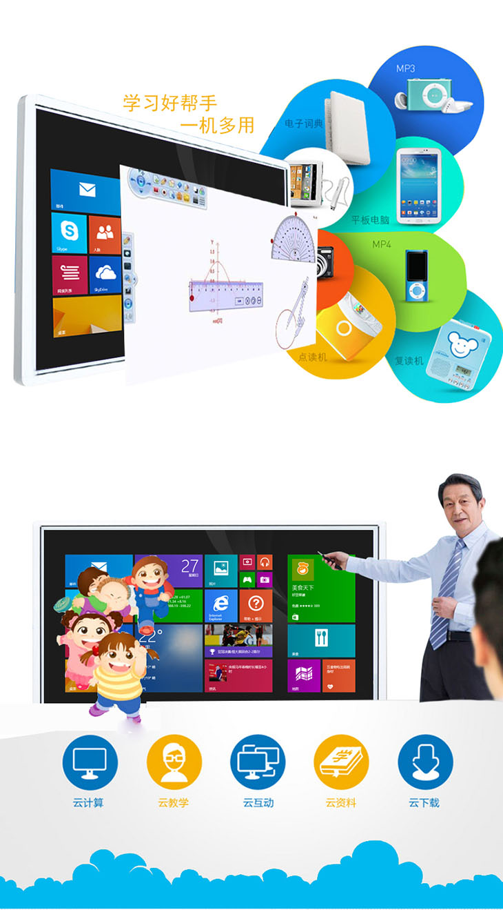 此機型不僅具有10Bit色彩的出色顯示效果;加上抗影像殘留技術,對各學科內(nèi)容的顯示都更加專業(yè),色彩更加準確真實。外觀上采用金屬邊框包裹的封閉式設計,將粉塵阻擋于機體之外,更加穩(wěn)定耐用;多點觸控技術讓老師與學生書寫更方便,互動方式更多樣。