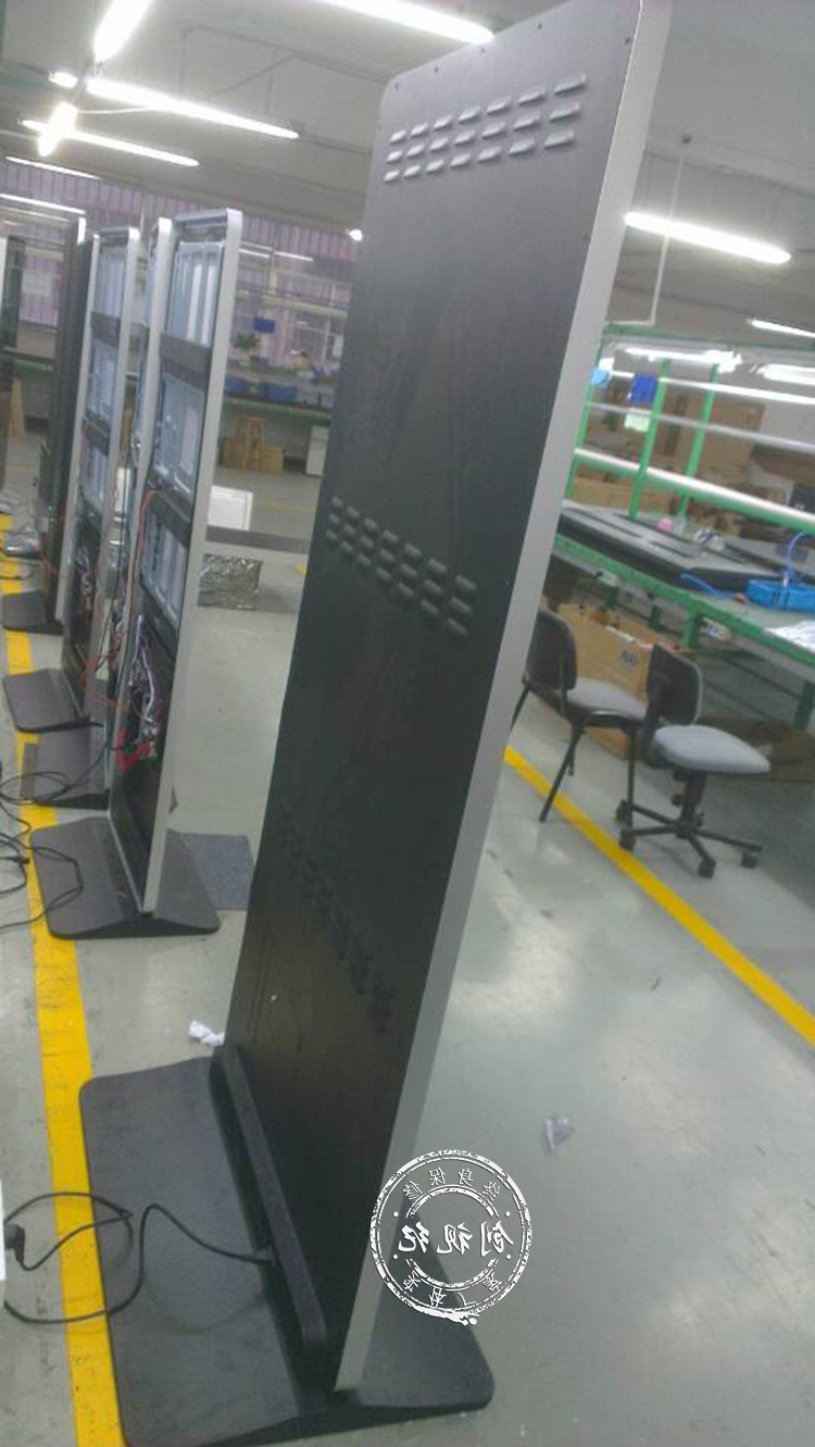 此次65寸立式廣告機(jī),專門為宣化公安局定做,整體機(jī)身厚度只有45mm,其后背也并沒有突出的部分,這樣顯得機(jī)身非常的纖薄,渾然一體,機(jī)身正面尾部專門印有莊嚴(yán)的國徽,下方是“張家口市公安局,宣化分局”字樣。